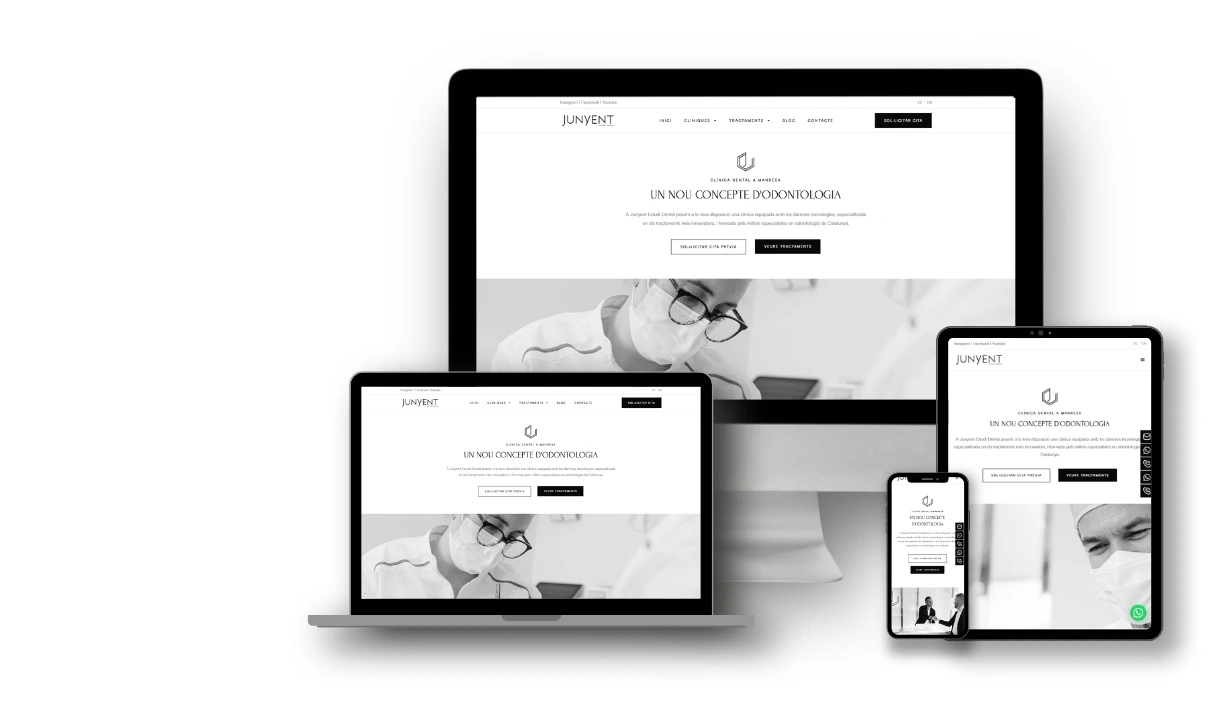 Junyent Estudi Dental es una clínica dental con una sólida trayectoria que, antes de trabajar con nosotros, operaba bajo dos marcas diferenciadas. Aunque compartían equipo, instalaciones y filosofía clínica, su comunicación estaba fragmentada.